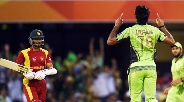 Mohammad Irfan extracted steep bounce from the Gabba pitch to pick up four wickets as Pakistan secured their first victory at the World Cup by beating Zimbabwe by 20 runs in their Pool B Match on Sunday, 01 March 2015.Wahab Riaz also excelled with both bat and ball, scoring a crucial half-century and taking four wickets, as Zimbabwe were all out for 215 in the 50th over, chasing Pakistan’s 235-7. It was Pakistan captain Misbah-ul-Haq’s patient 73 and a quick-fire unbeaten 54 from Riaz that gave the team, looking for their first win after defeats to India and West Indies, a total to defend after losing early wickets to paceman Tendai Chatara.